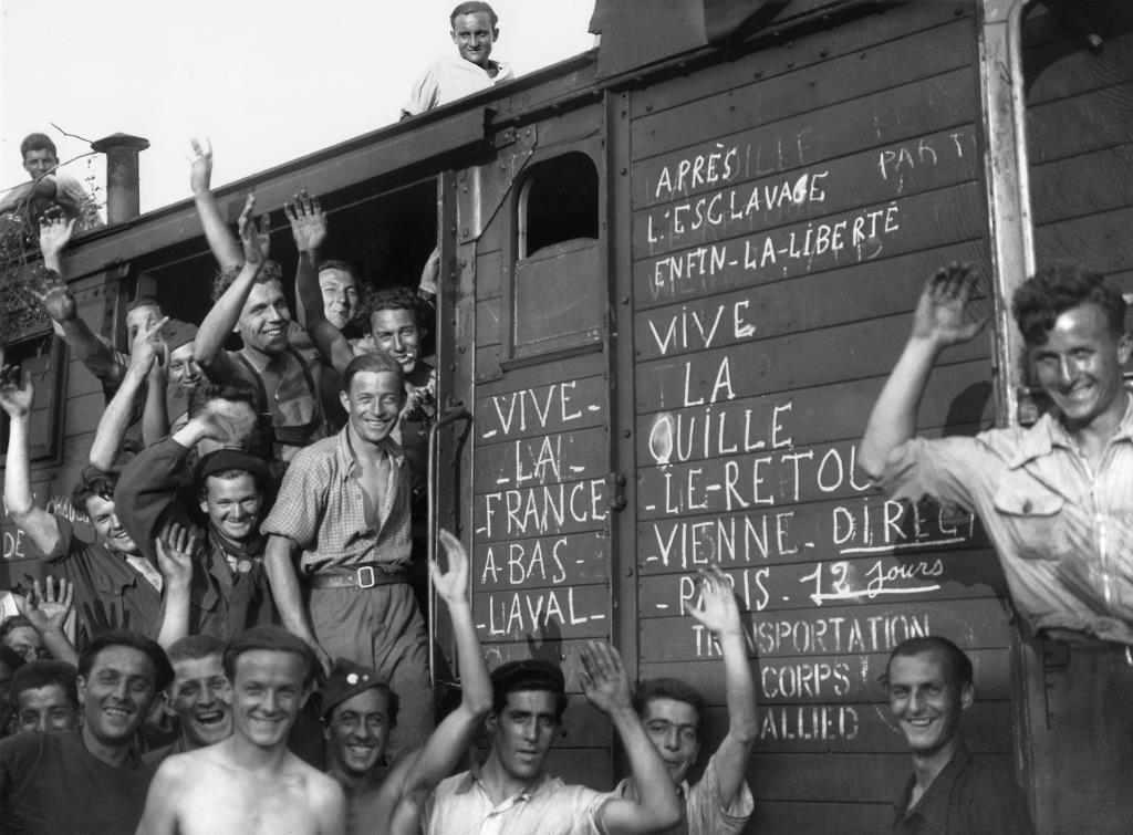 French forced laborers returning from Vienna at Thionville station on August 9, 1945 ©AFP with permission.